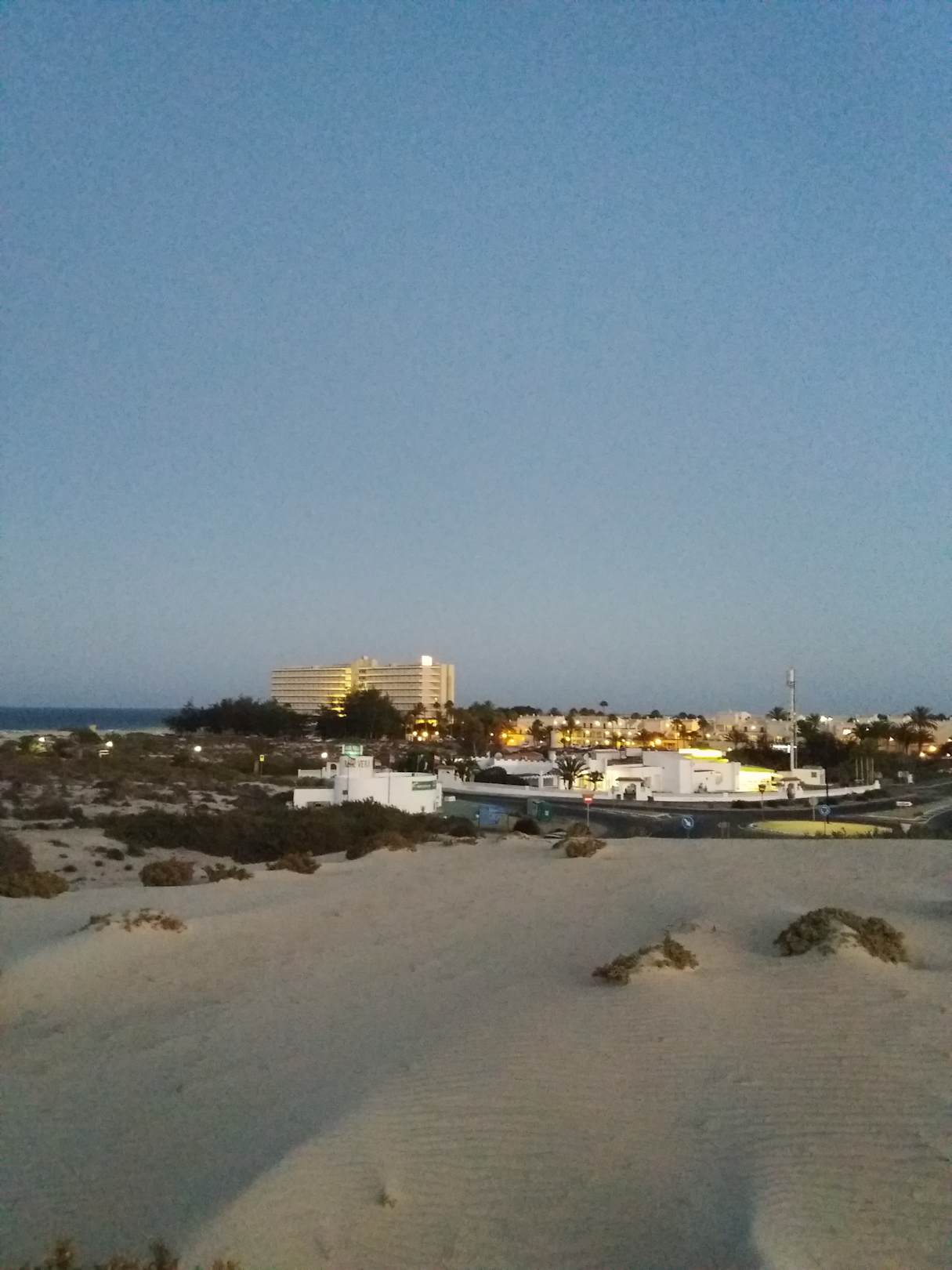 Blick von den Dünen gegenüber der Bushaltestelle.