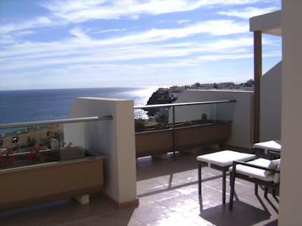 Balkon mit Sitzmöbeln und Ausblick Hotel Riu Palace Calypso