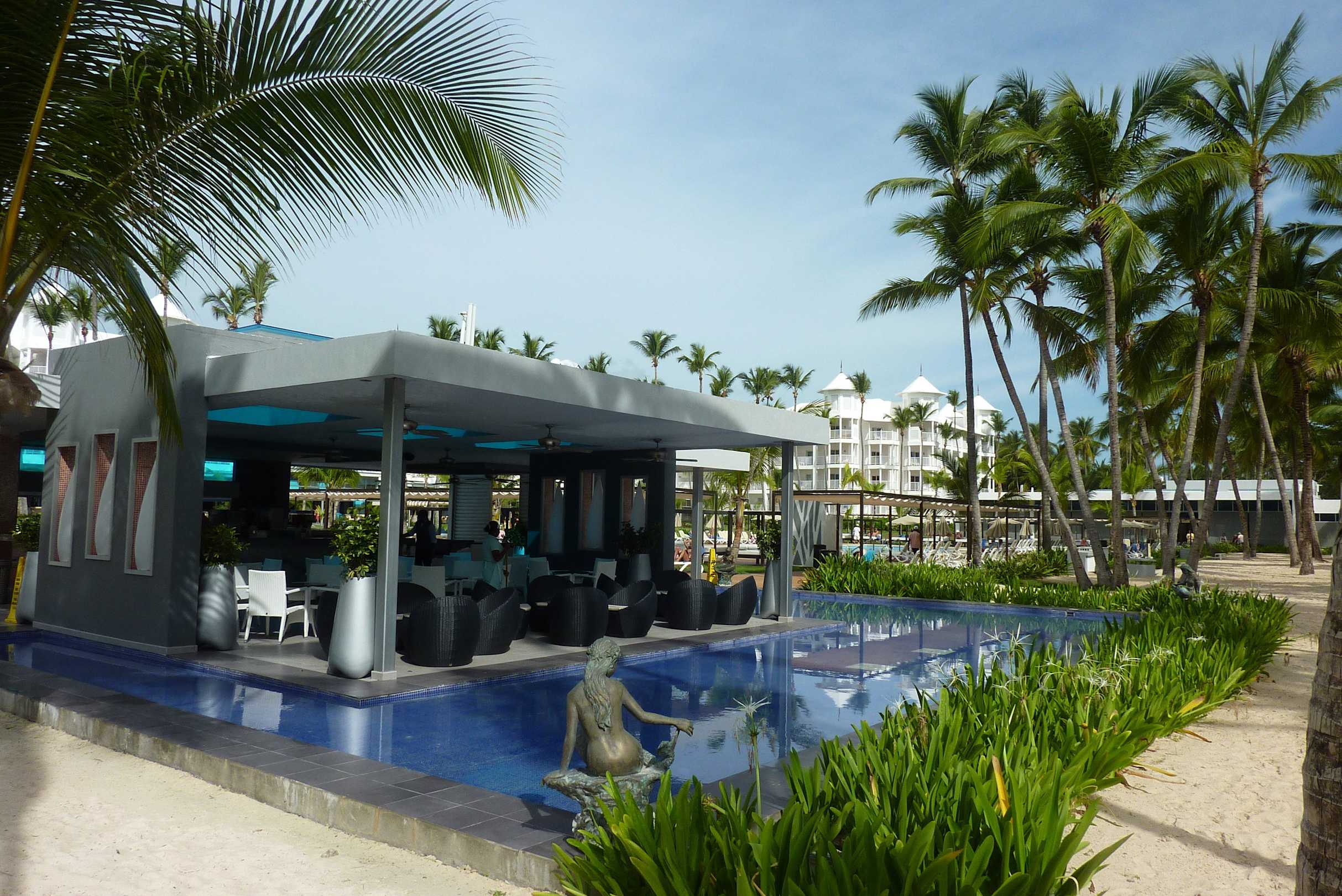 Die Poolbar vom Strand aus gesehen