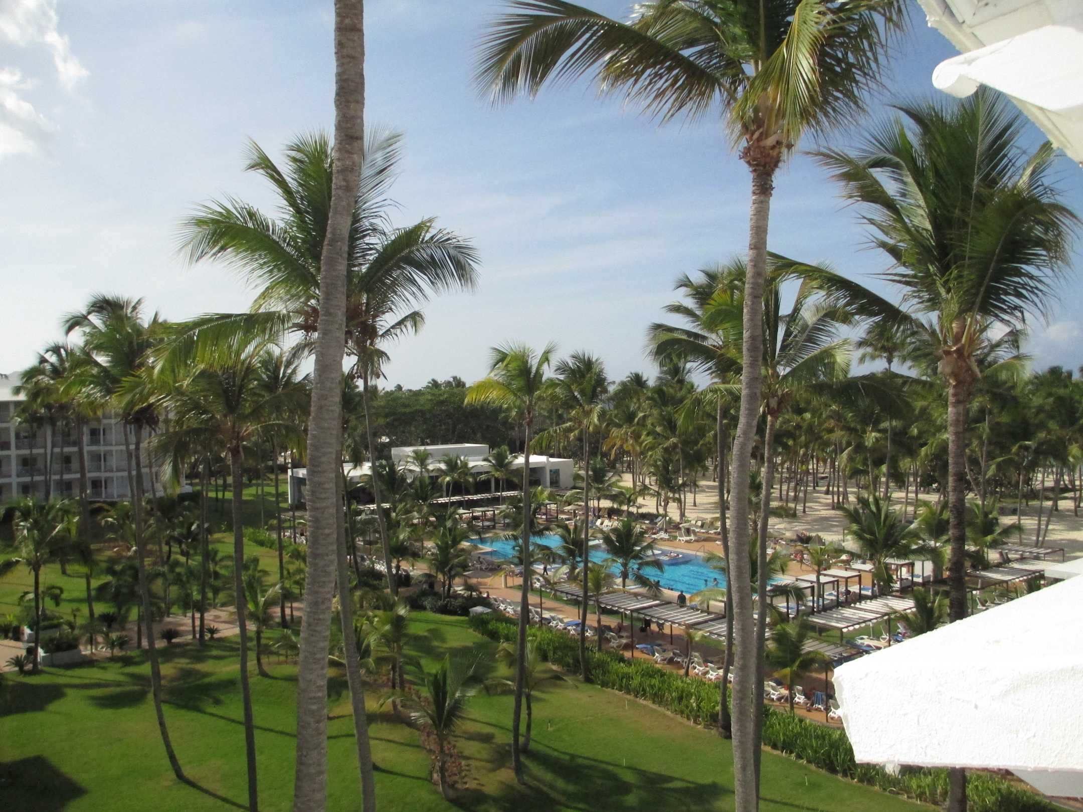 Blick auf pool und garten