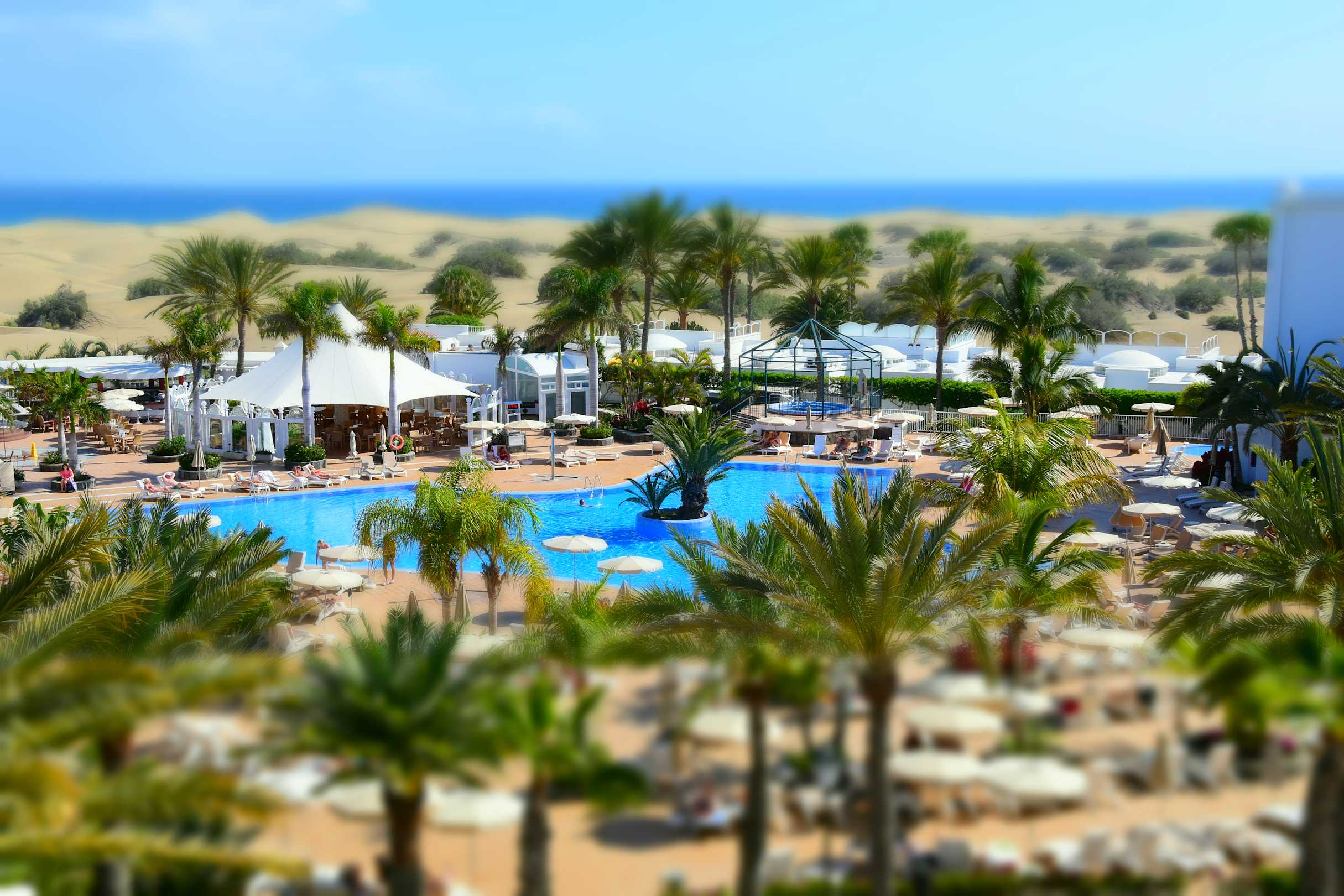 Blick über den Pool und Dünen