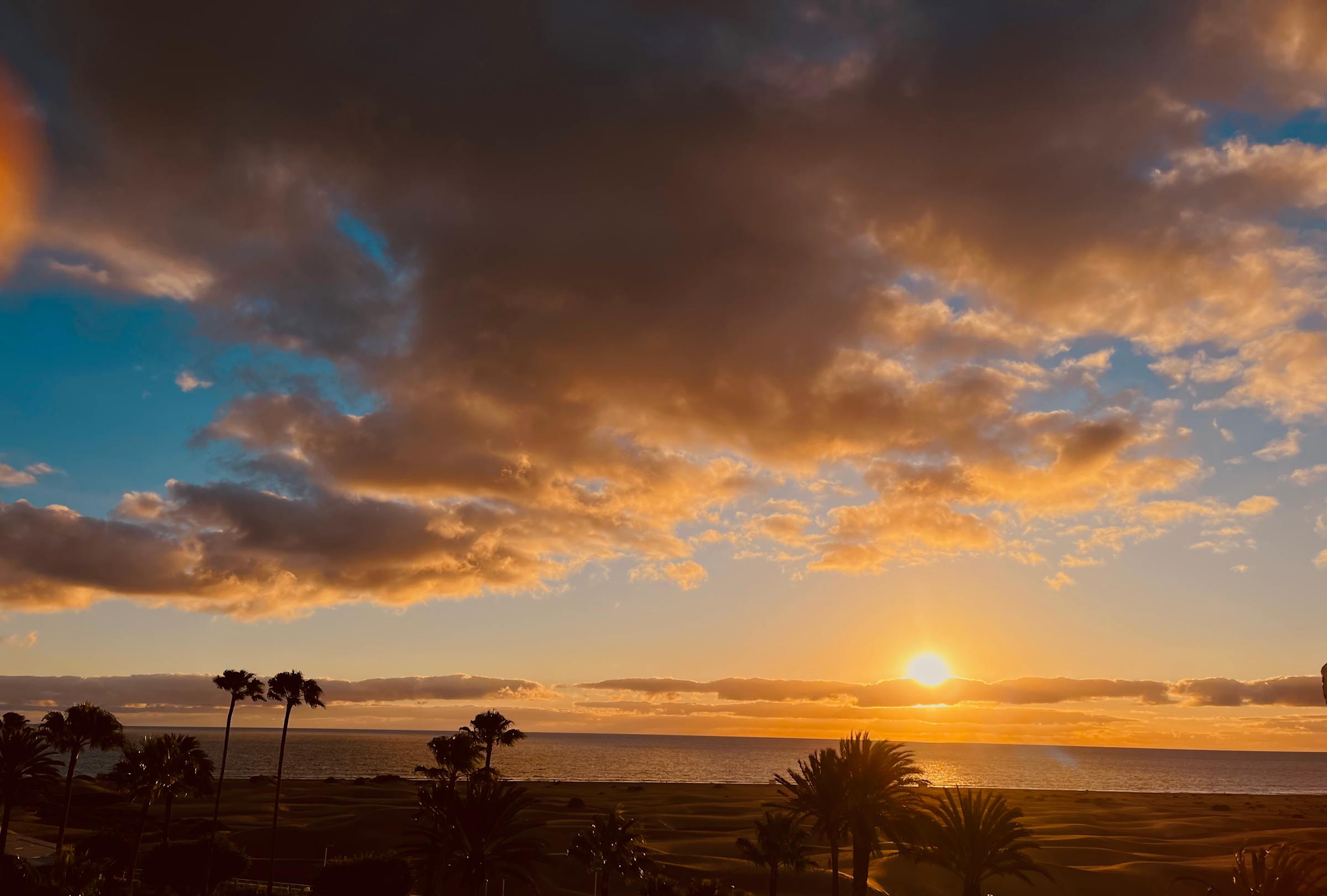 AusblickMorgens um 6:30h Mitte Dezember. Traumhafter Blick vom Balkon. Achtung: der Strand liegt weit weg hinter den Dünen.