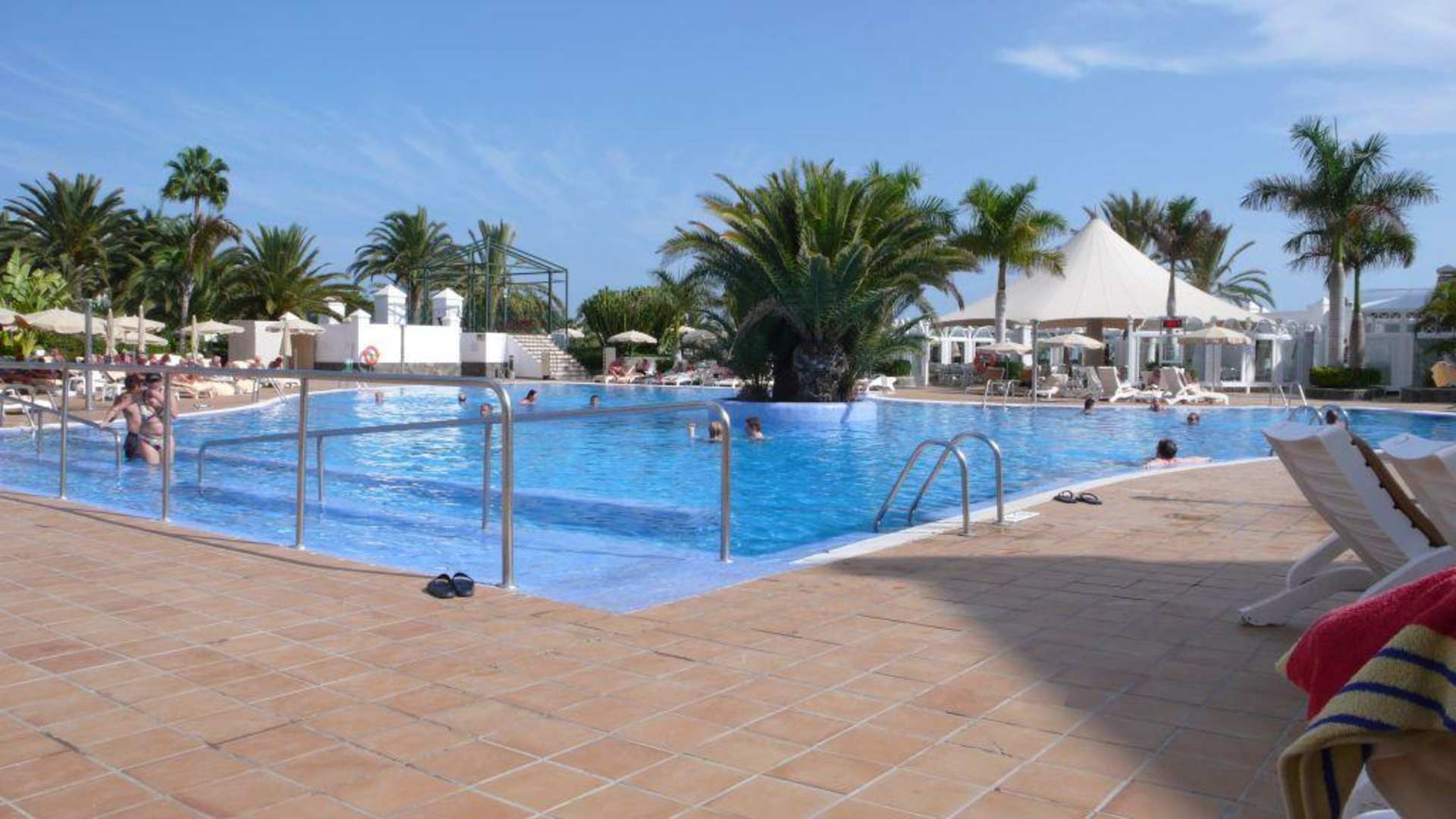 Schwimmbecken mit GartenbarDas Bild zeigt eines der beiden Schwimmbecken des Hotels mit der Gartenbar.