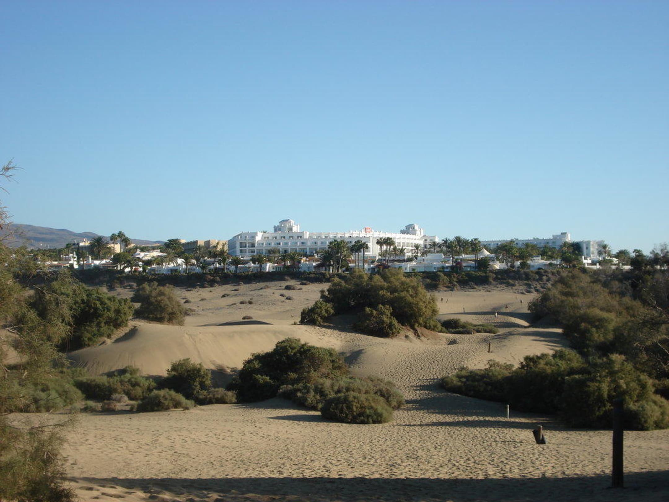 Blick von den Dünen auf das Hotel
