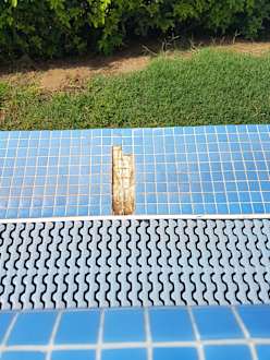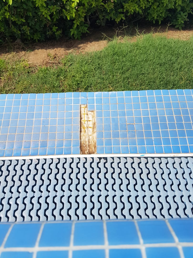 Fehlende Mosaikfliesen an der Überlaufrinne vom Pool.