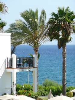 Dieses Foto wurde von unserem Villasuitezimmer aufgenommen und zeigt gleichzeitig die Aussicht sowie auch ein Superzimmer direkt am Meer. Man kann bei der Zimmerverteilung aber leider nur GLÜCK haben...