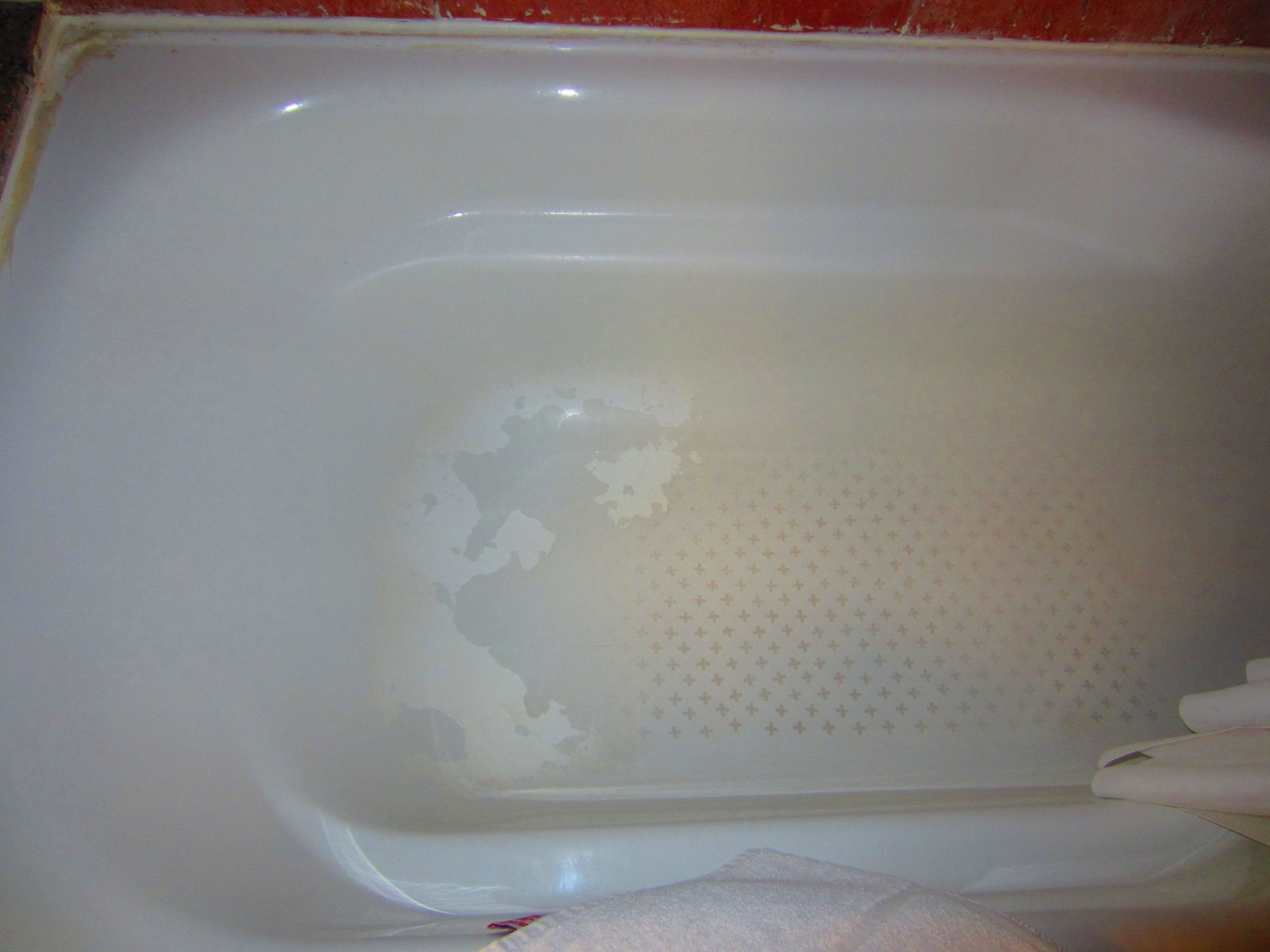 In der Badewanne ist das Muster schon abgegangen. Dies stört aber keineswegs - es ist auch nichts beim Belag zum Spüren - es ist einfach nur nicht so toll aus.