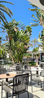 Bar mit Ausblick auf Palmen und Bananenstauden