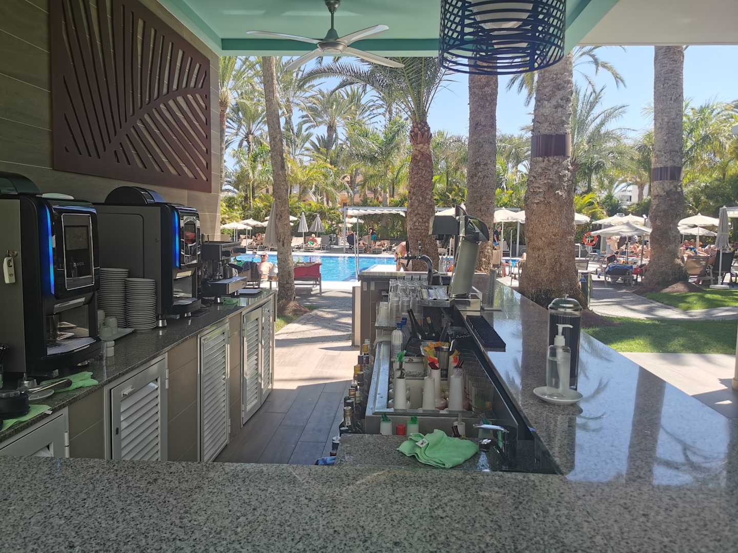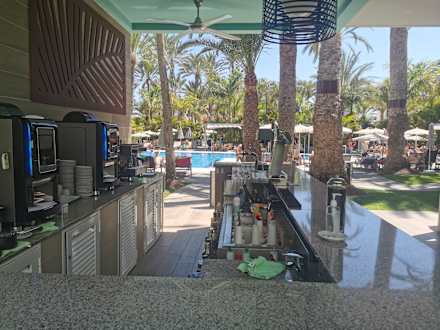 Poolbar mit schönem Blick auf einen der beiden Pools.