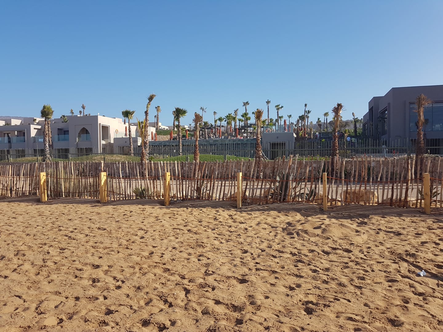 Blick auf den Infinity-Pool vom Strand aus.