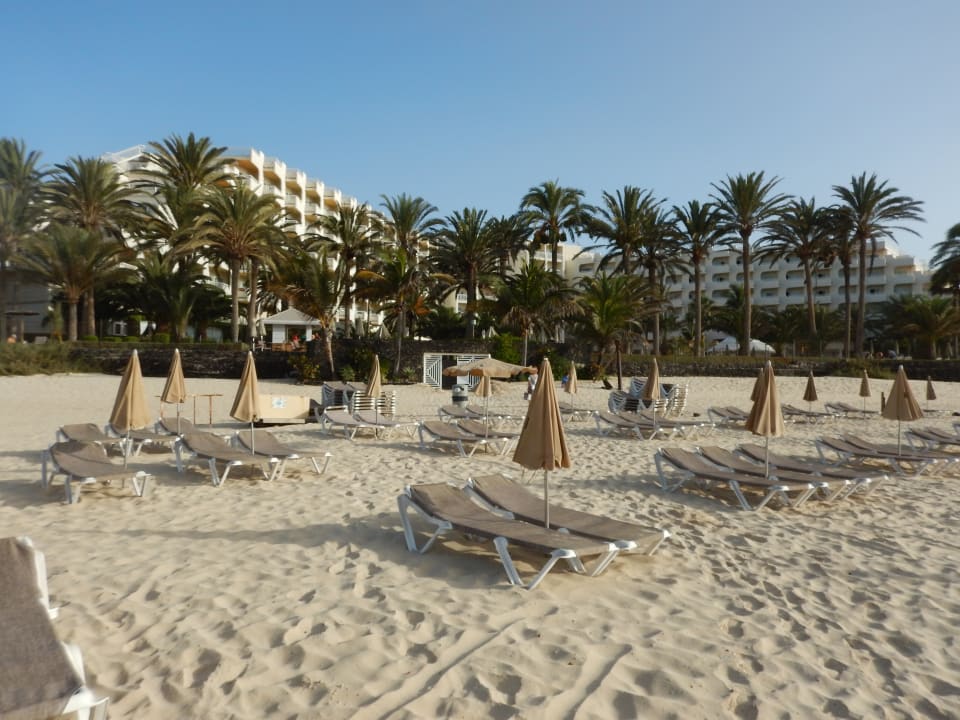 Direkter Strand mit Liegen vor dem Hotel