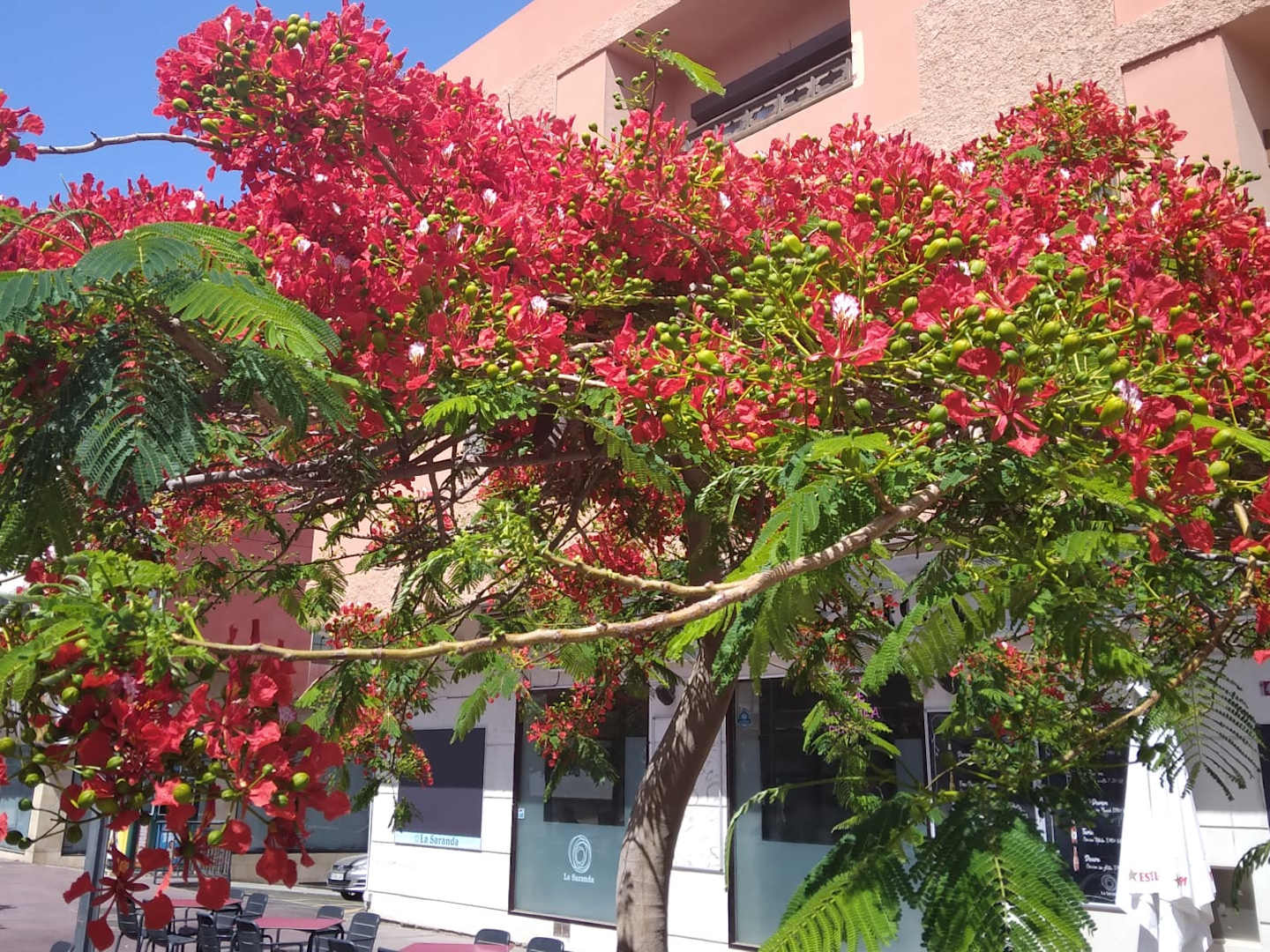 Überall in den Strasse blühende Bäume.