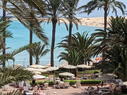 Blick vom Zimmer auf den Strand