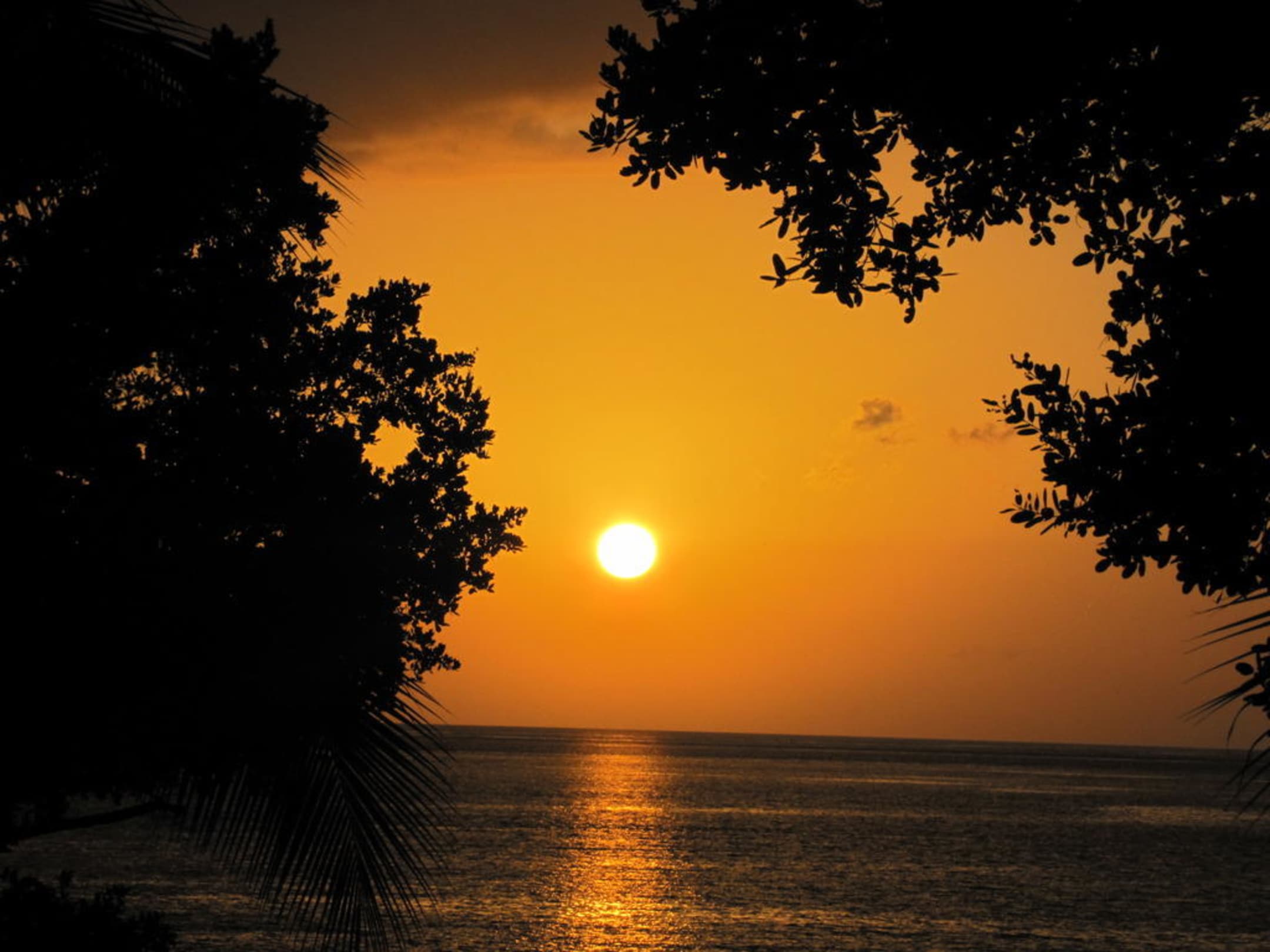 Blick vom Balkon auf Meer und Sonnenuntergang