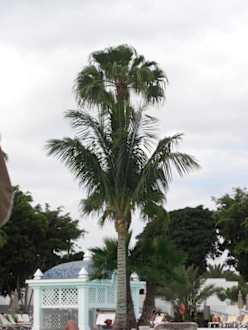 Palme am Pool; im Hintergrund die Poolbar