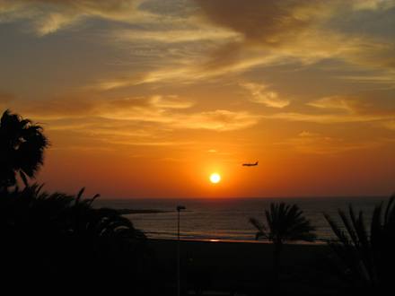 Landeanflug im Sonnenaufgang
