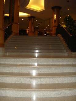Imposanter Treppenaufgang vom Barbereich hinauf zu den Zimmerzugängen im alten Rezeptionsbereich vom alten RIU Palace Gebäude, soll durch Zimmer künftig ersetzt werden