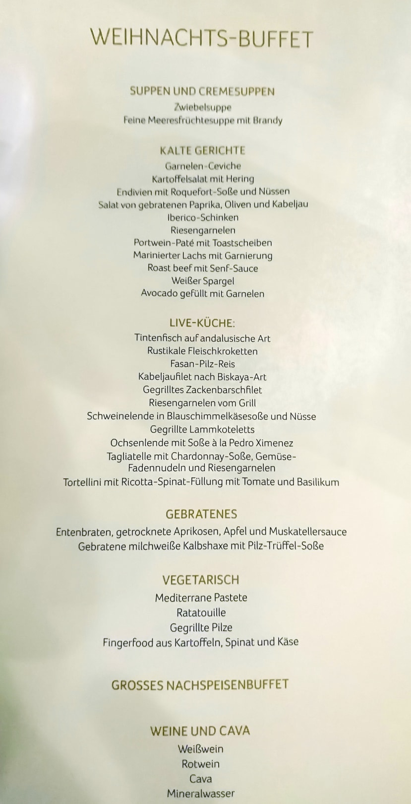 Speisekarte für das Weihnachts-Buffet