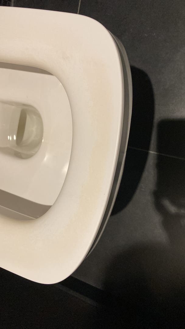 Die Klobrille schön vergilbt und wunderbar angeraut.