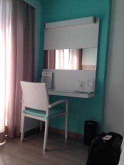 Es gibt einen Stuhl und einen Spiegel
