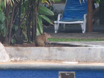 Ein Aguti bei der Morgenwäsche