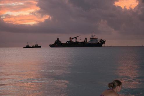 Am zweiten Tag war das Schiff noch zu sehen dass den Sand aus dem Meer zum Strand gepumpt hat-danach wars weg und wir hatten ne schöne Aussicht und ganz viel Sand!!!