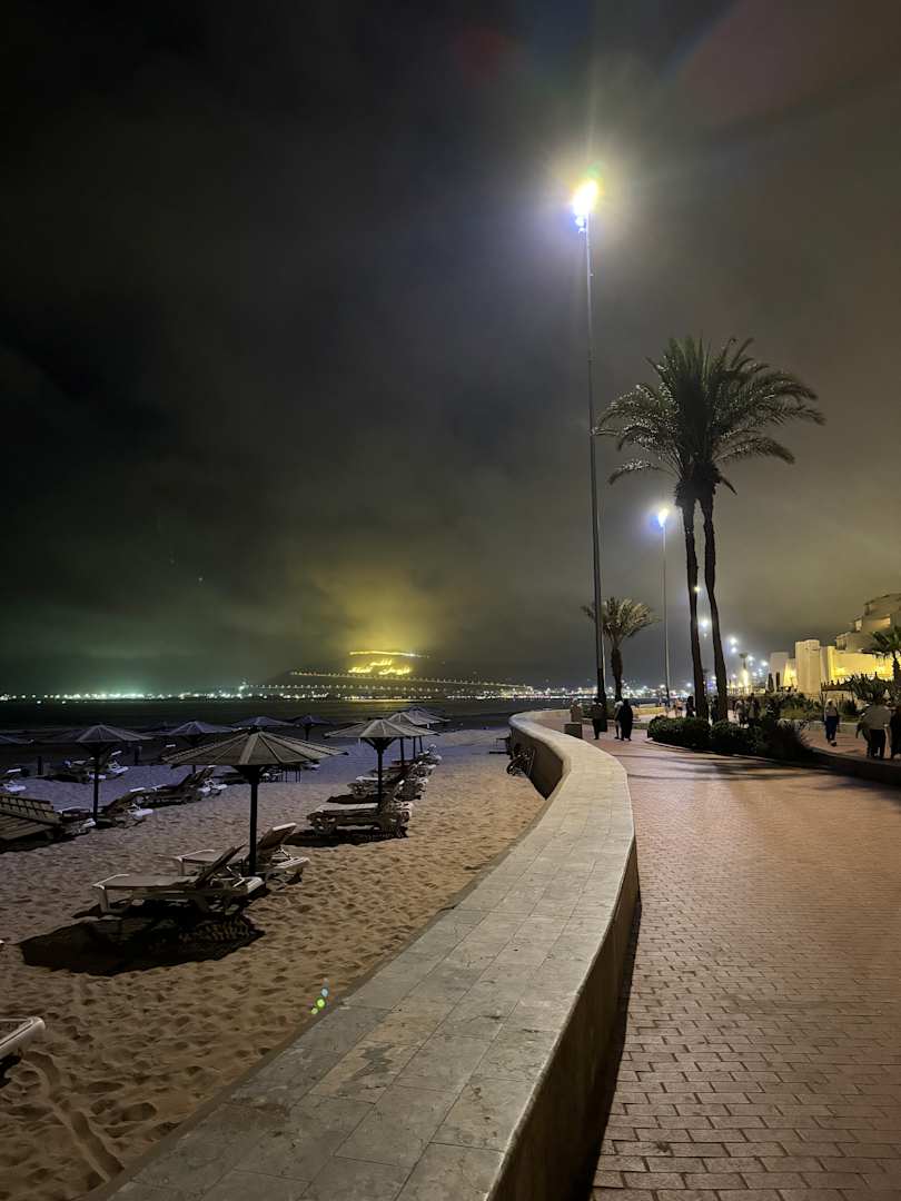 StrandDie Promenade am Abend.