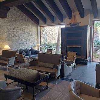 Der Kamin ist abends an und sehr gemütlich.