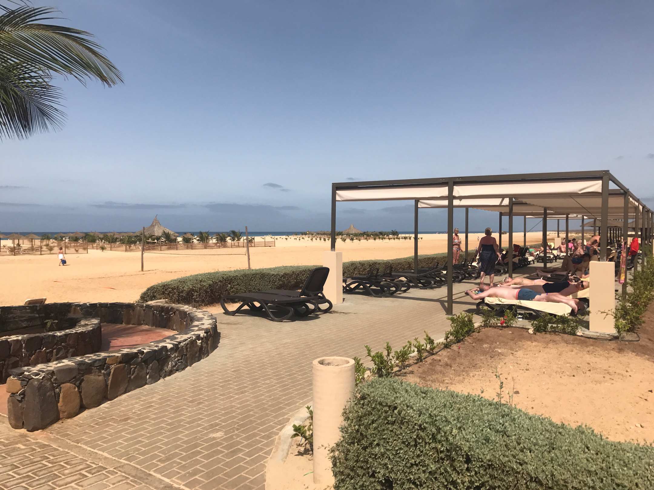Liegen zwischen Pool und Strand