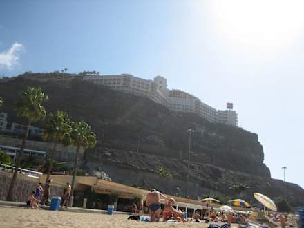 Blick vom Strand auf das Hotel