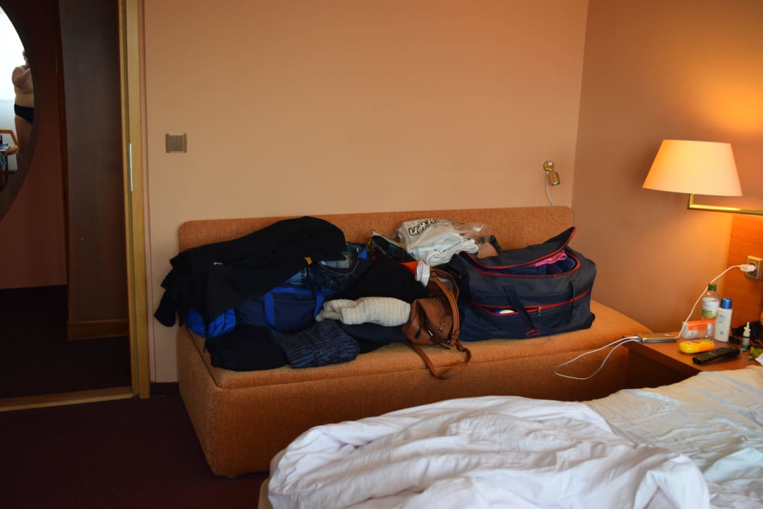 Klamotten lagern in den Taschen auf dem Sofa