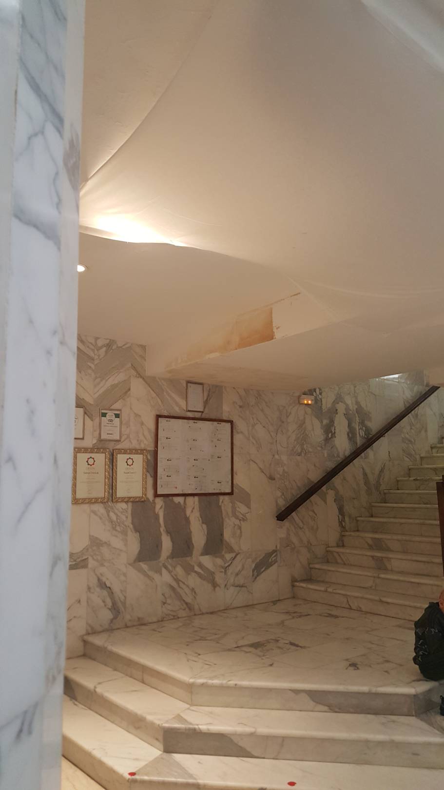 Die Lobbydecke nach einem Einsturz bei Regen.