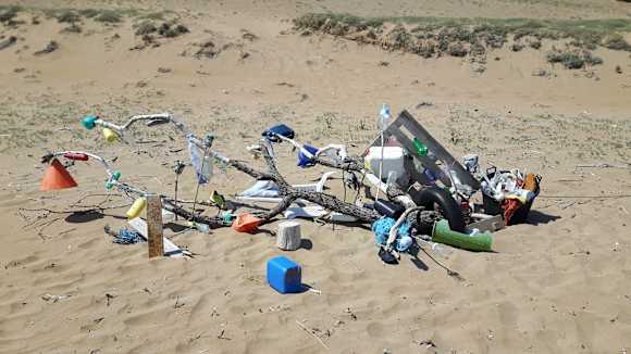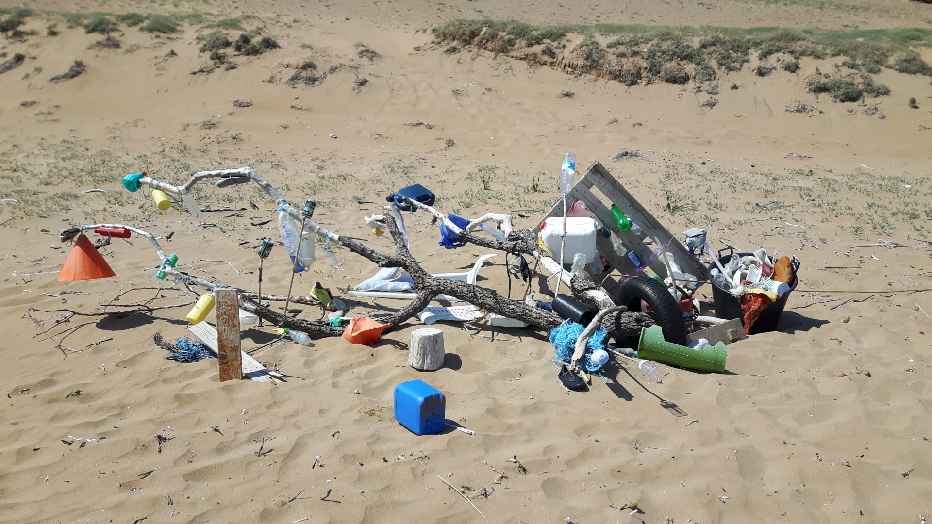 StrandJa hier hat sich ein Künstler die Mühe gemacht und Strangut zu einem Kunstwerk zusammenzustellen. Leider findet man doch überall solchen Müll.