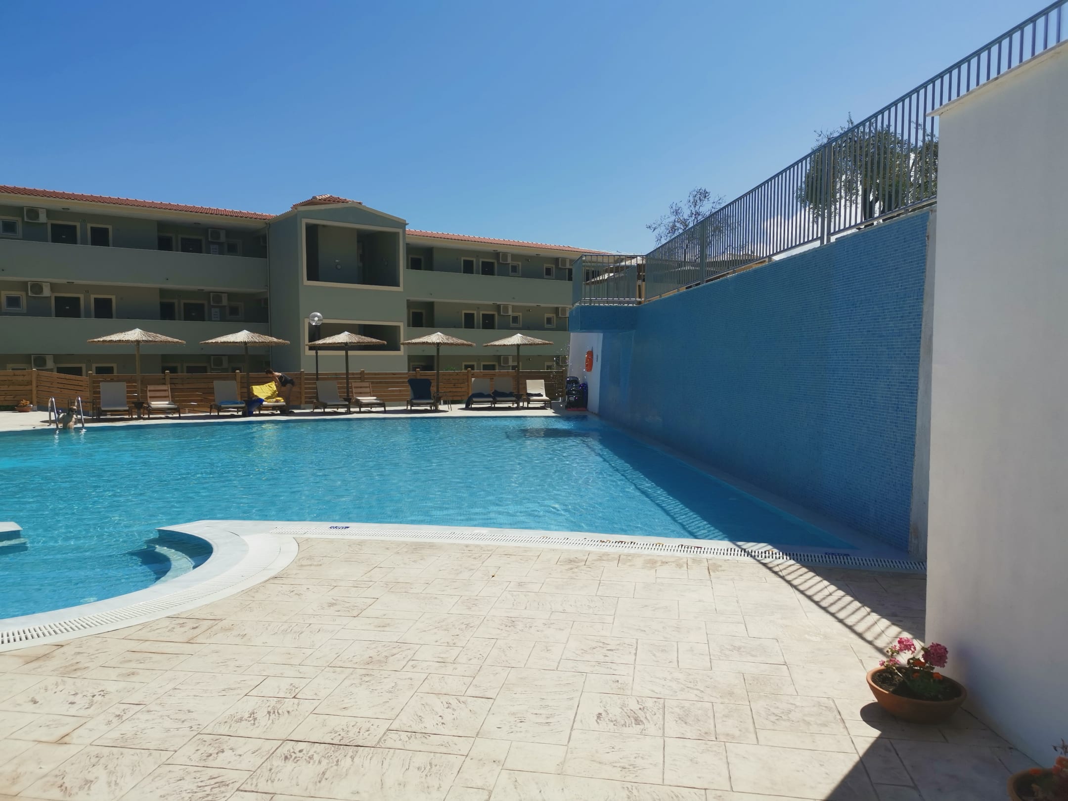 Einer der beiden Pools im oberen Bereich der Hotelanlage, direkt oberhalb hinter der Mauer im Bild befindet sich der zweite obere Pool mit Poolbar.