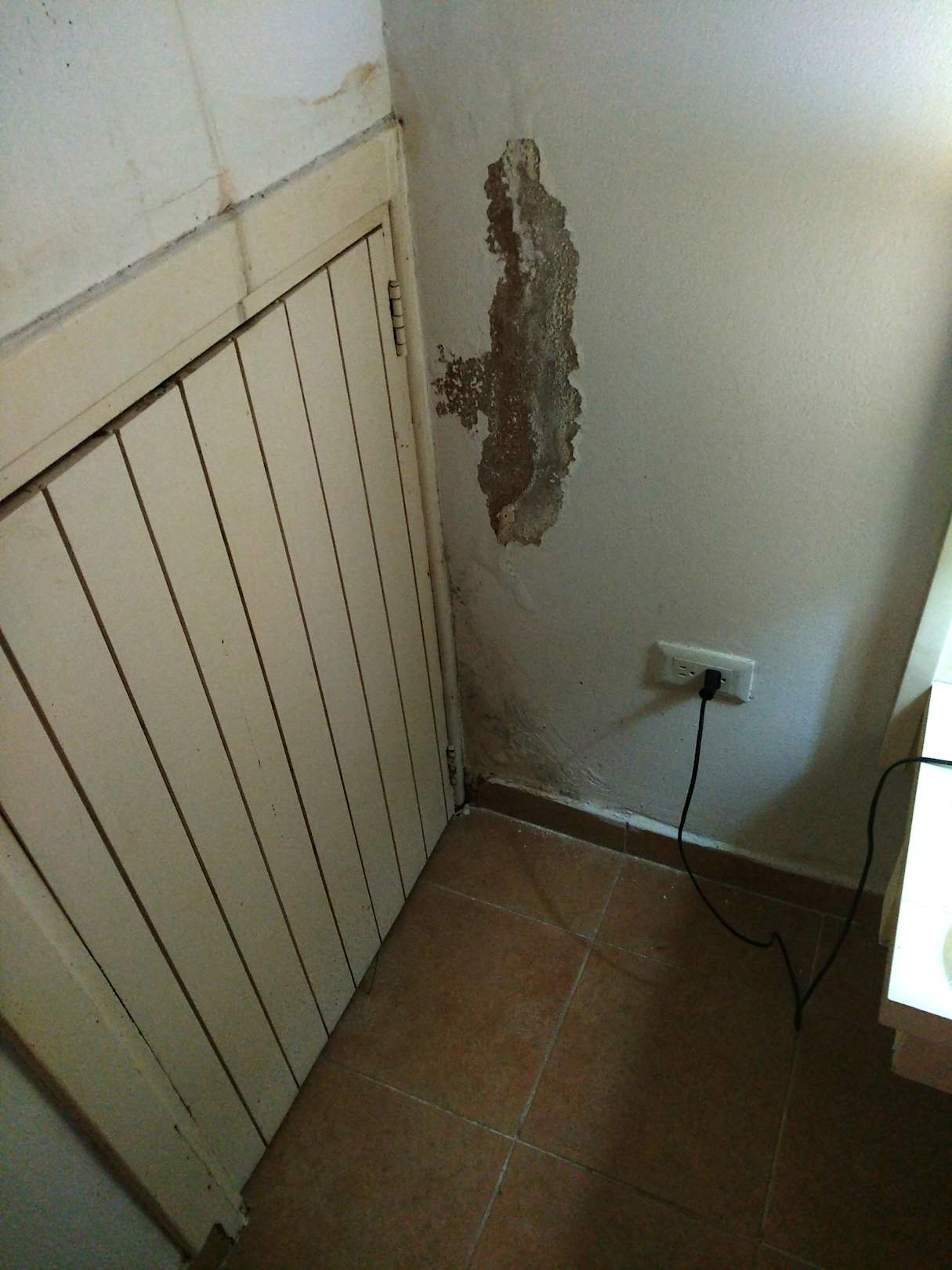 Putz fällt von der Wand und Schimmel im Eck unten
