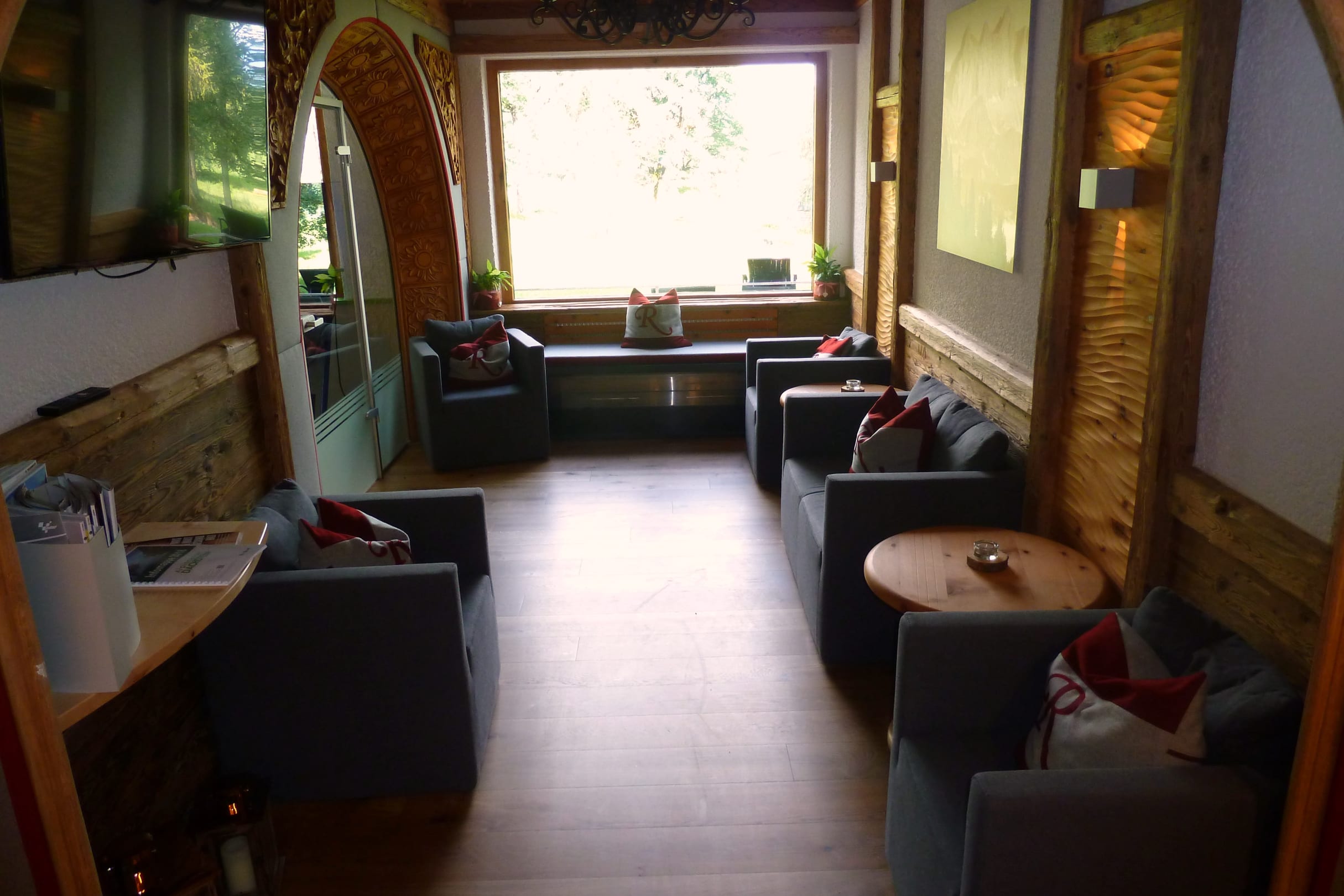 Kleiner Aufenthaltsraum mit Flach-TV.