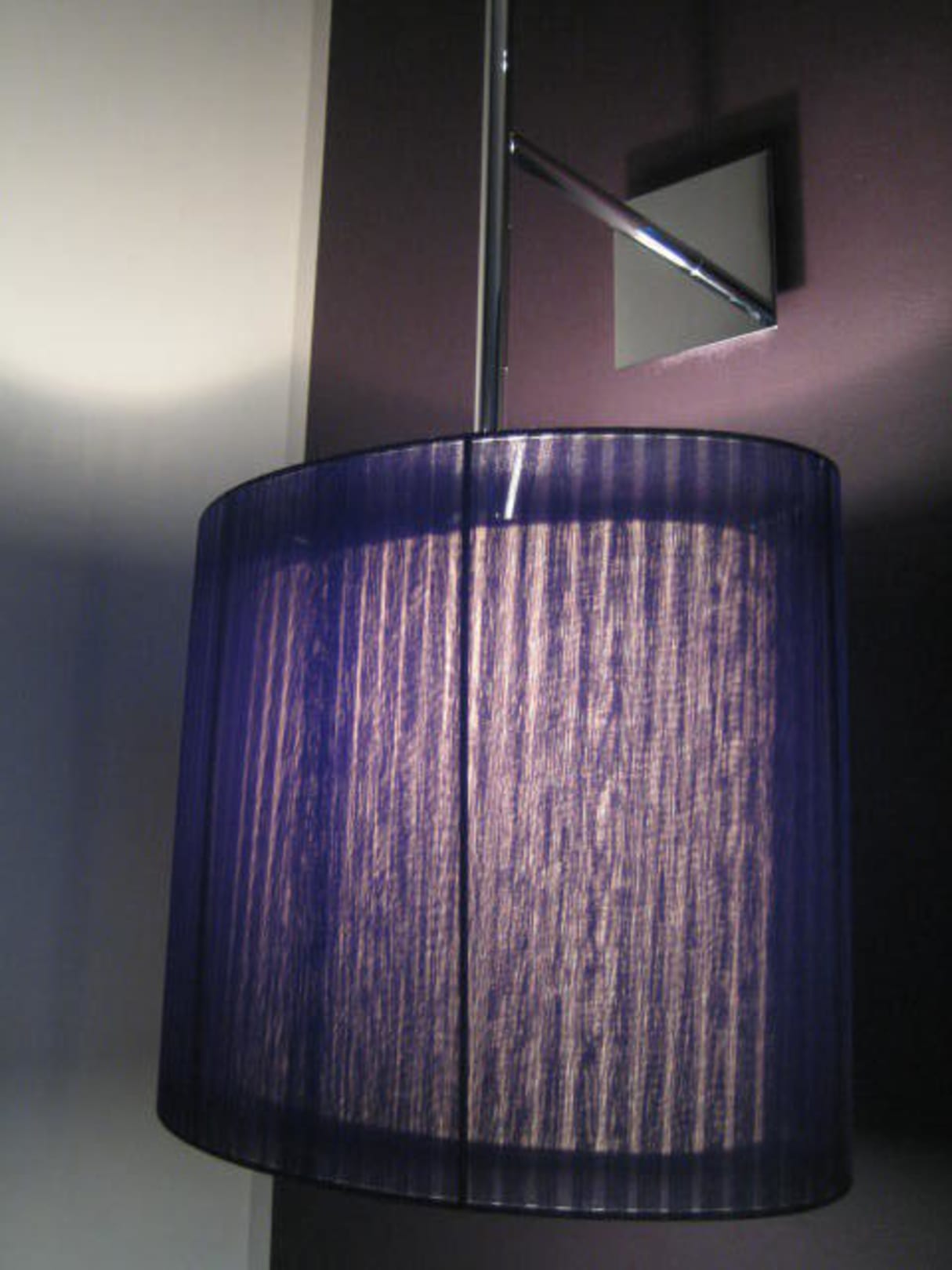 Lila Lampe am Bett