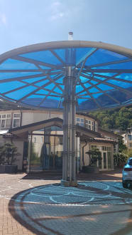 Blick auf den Eingang des Hotels