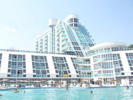 basen przed hotelem i sam hotel w tle