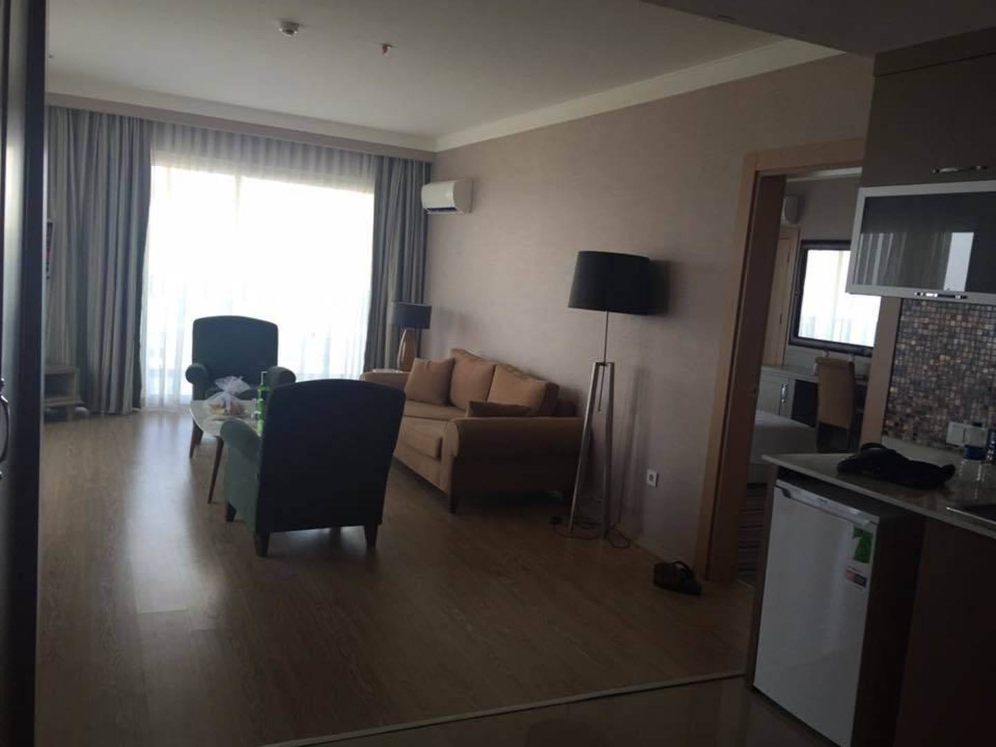 Das Wohnzimmer mit amerikanische Küche war großzüg