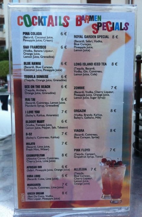 Kosten für Getränke, die nicht in AI enthalten sind