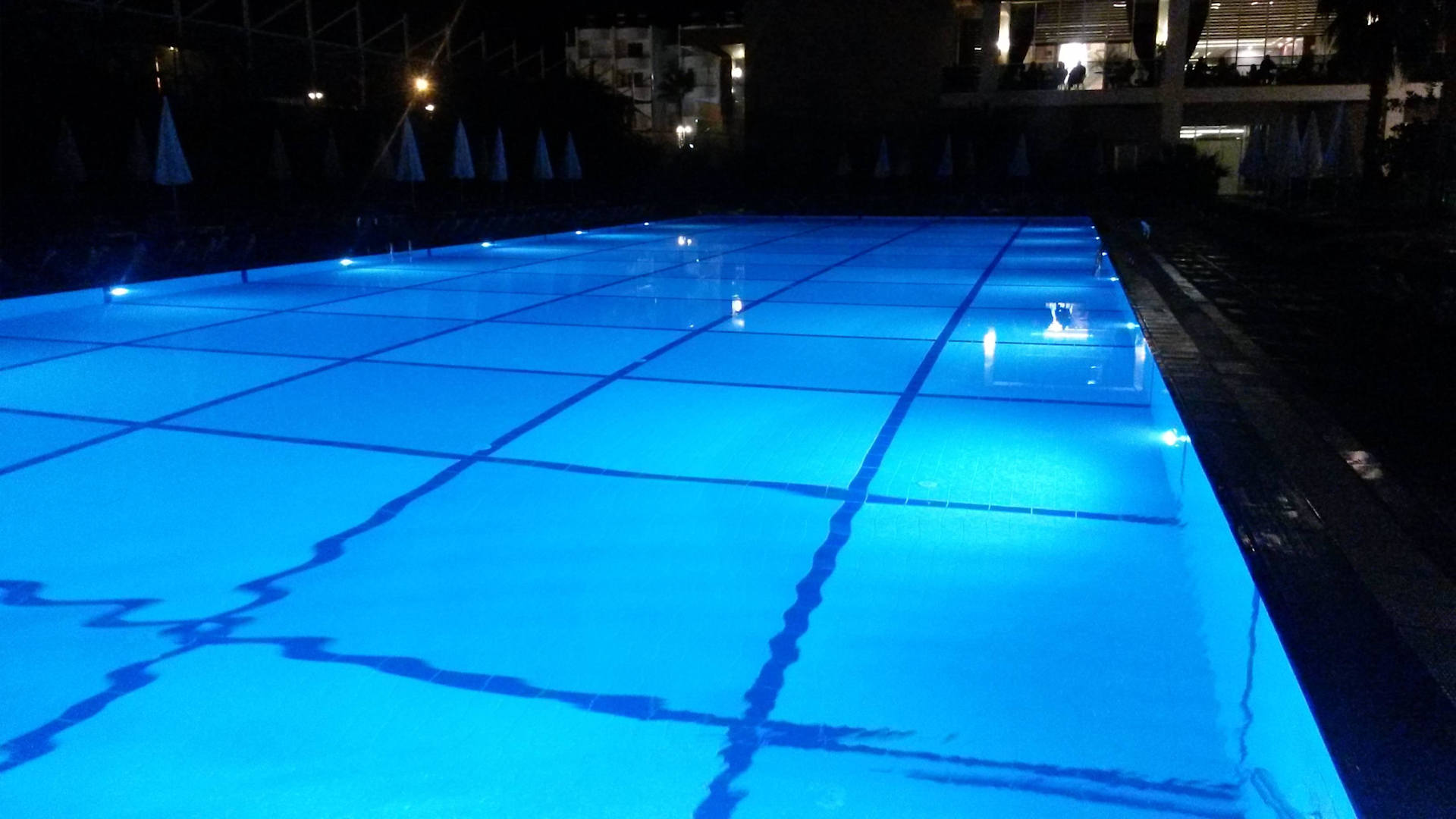 Sportpool bei Nacht