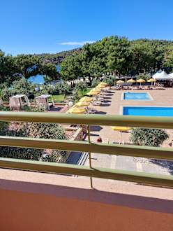 Blick vom Balkon auf den Pool