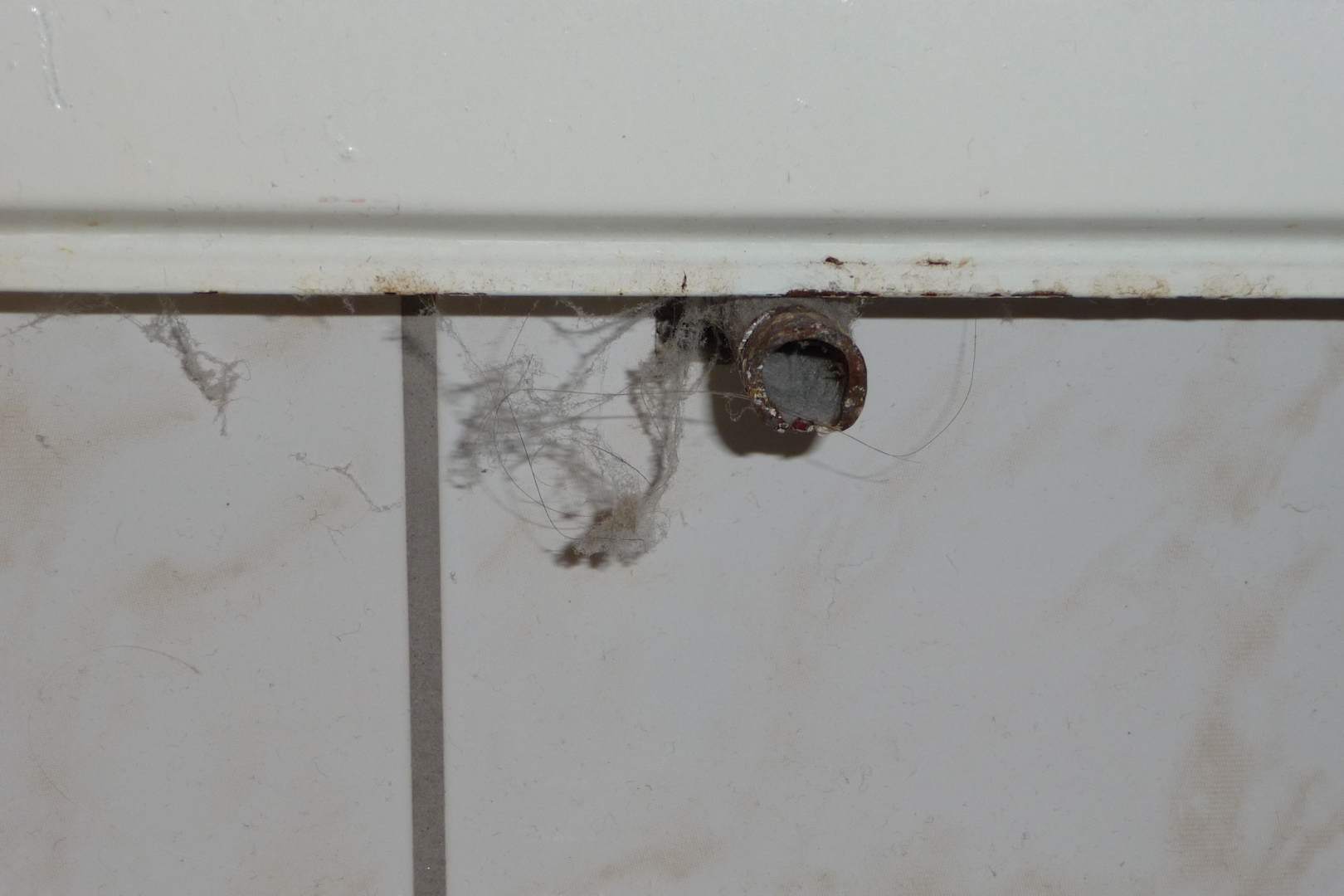 Schmutz im Bad unter der Heizung