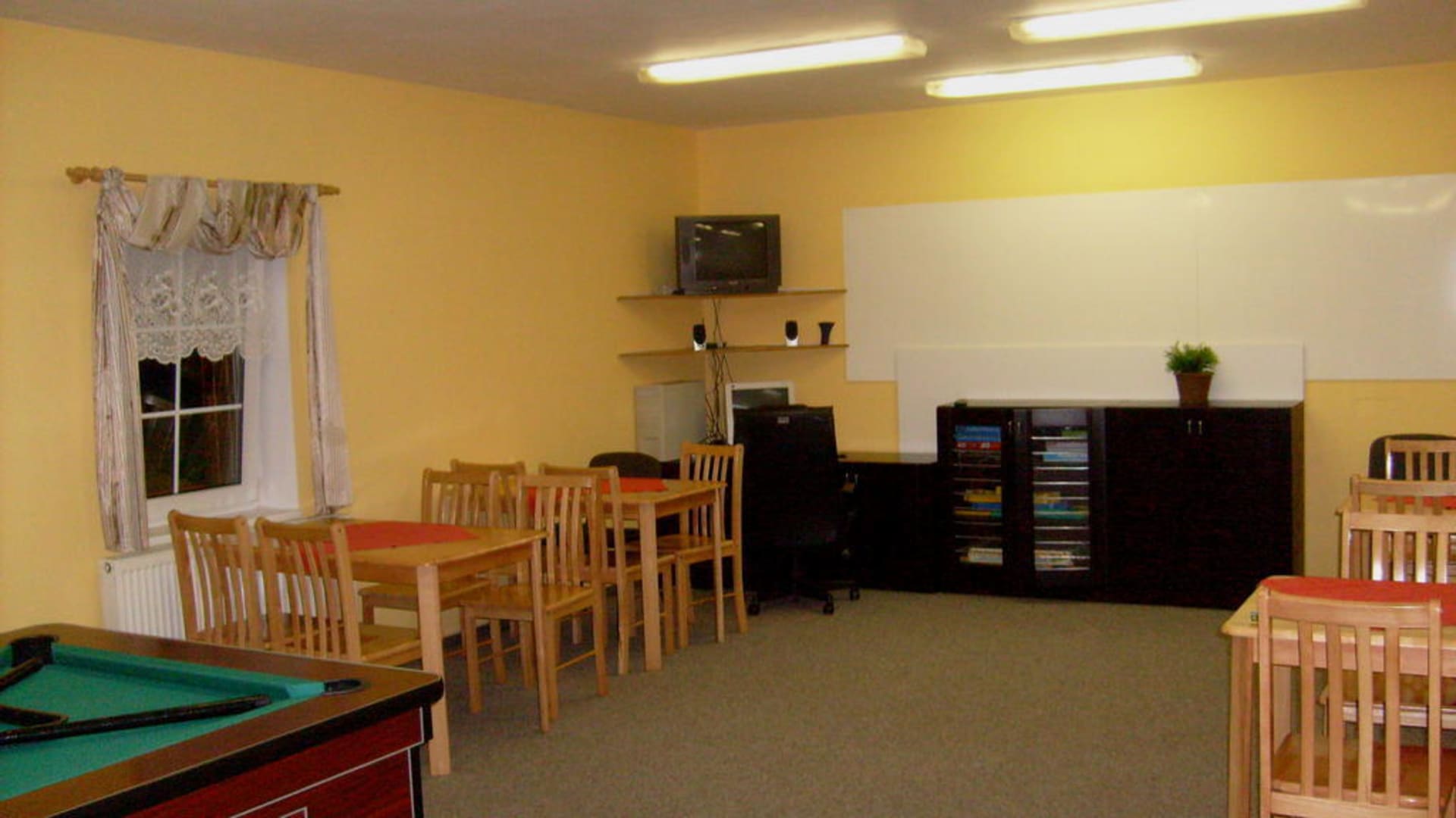 In diesem Raum kann man viele verschiedene Brettspiele spielen, sowie den Computer benutzen (Inernetzugang ist Kostenlos) und man kann für 10 kc Billiard spielen.