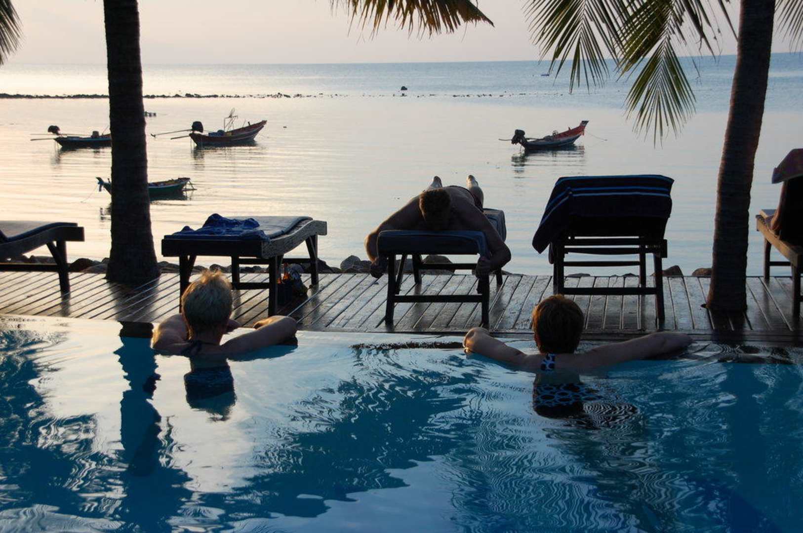 Blick vom Pool Richtung Sonnenuntergang
