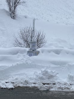 Bushaltestelle vor dem Haus, mit viel Schnee