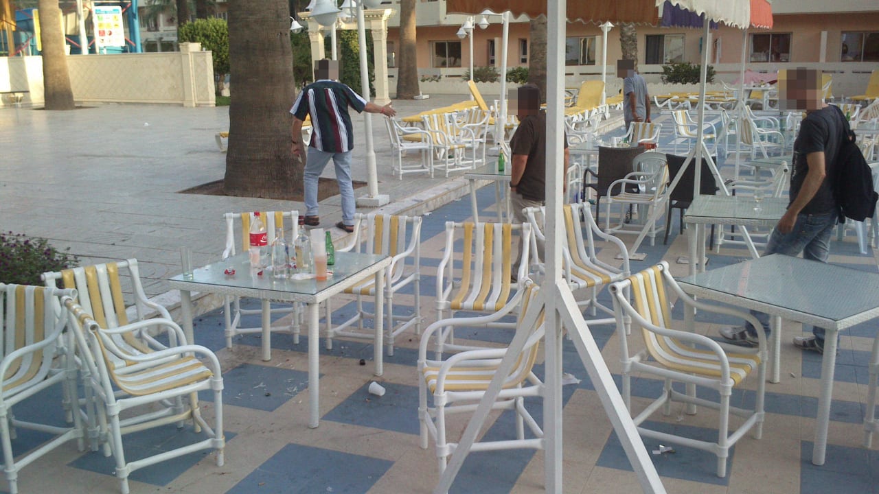 Poolanlage mit Überbleibsel vom Vorabend
