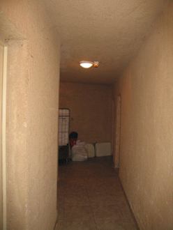 So sieht der Flur im zweiten Untergeschoss aus. Die Zimmer liegen direkt neben der hauseigenen Wäscherei. Die Schmutzwäsche wird auf dem Flur gelagert.