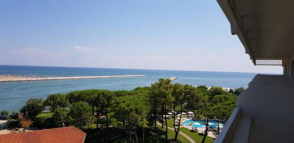 Aublick vom Balkon...Meer... und unten rechts noch Gartenanlage und Pool